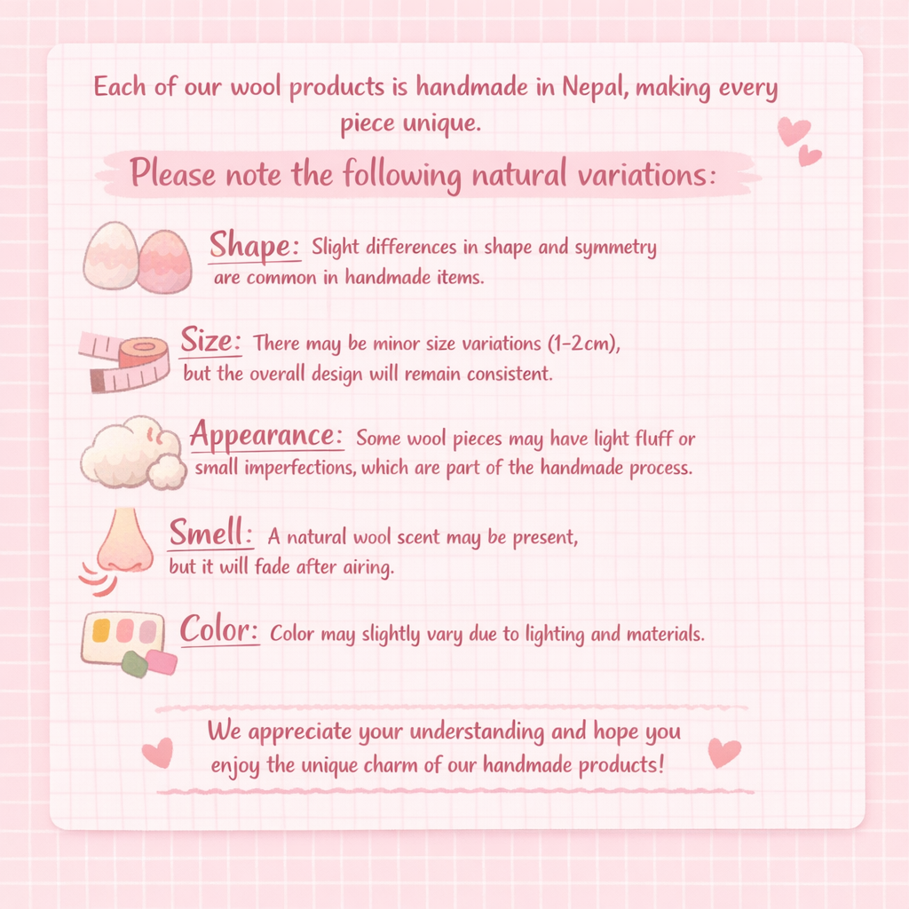 - Material: Premium soft wool felt; hand-stitched with cotton thread